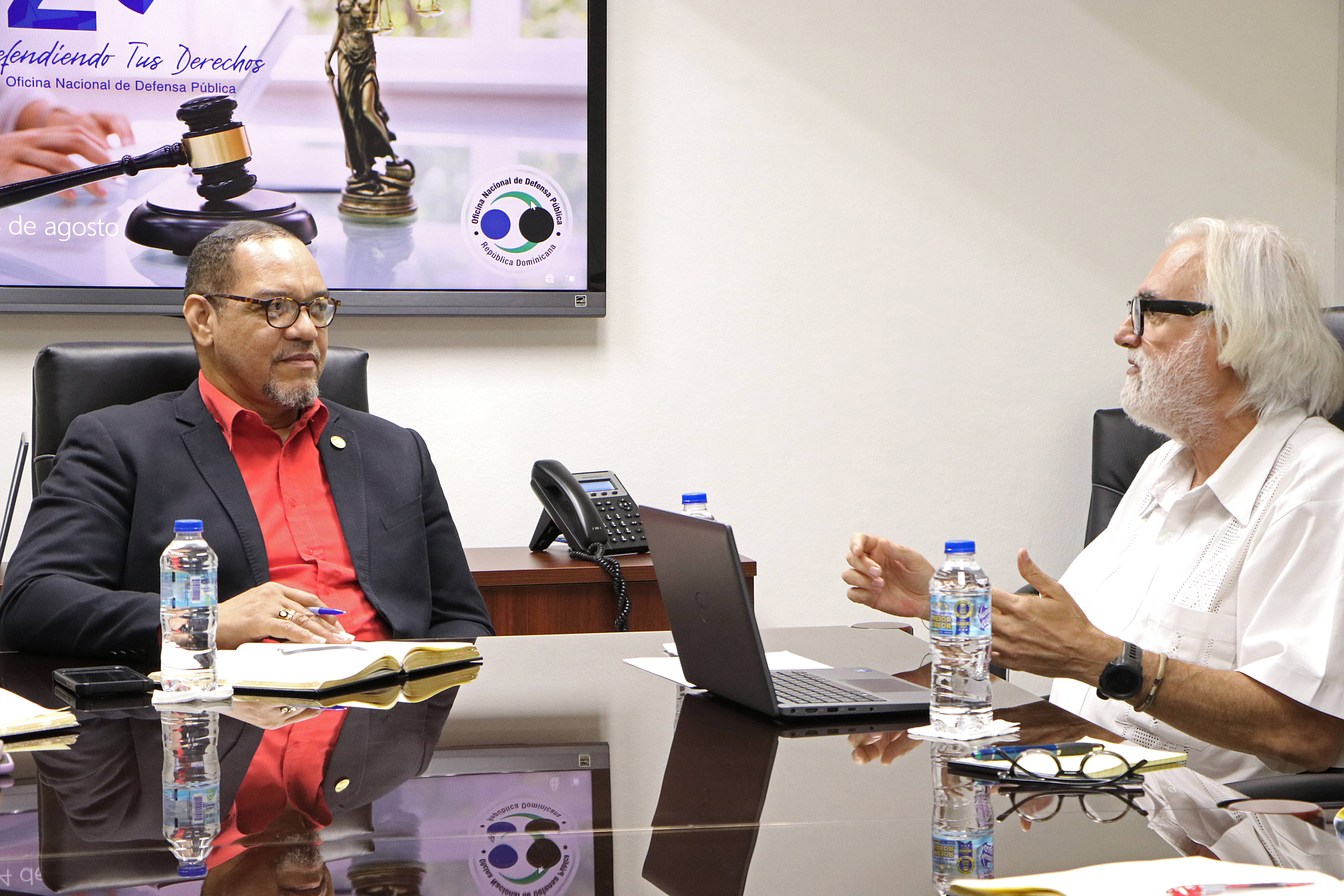 Santo Domingo.– El director de la Oficina Nacional de Defensa Pública (ONDP), licenciado Rodolfo Valentín Santos, recibió en visita de cortesía al reconocido experto internacional en materia penitenciaria, Andreu Estela, con el propósito de dialogar sobre los criterios de la institución en torno a las medidas cautelares y la situación de las prisiones preventivas en el país.