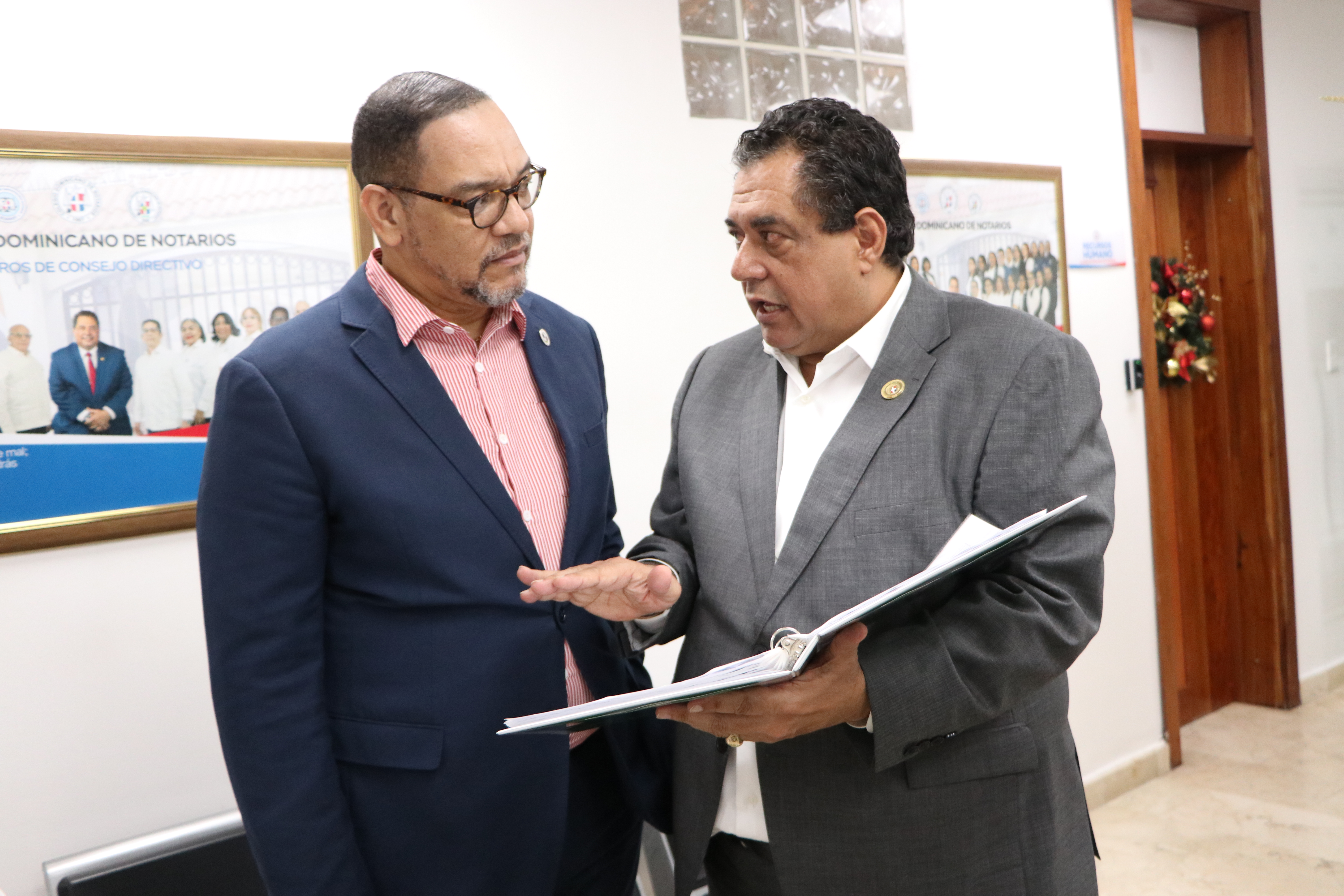 Santo Domingo.– El director de la Oficina Nacional de la Defensa Pública (ONDP), Rodolfo Valentín Santos, realizó una visita de cortesía al presidente del Colegio Dominicano de Notarios, Dr. Jhon Richard Paniagua, quien presentó al funcionario los avances tecnológicos, así como los trabajos de remozamiento y reconstrucción que está desarrollando el gremio para modernizar y fortalecer el servicio notarial en la República Dominicana.
