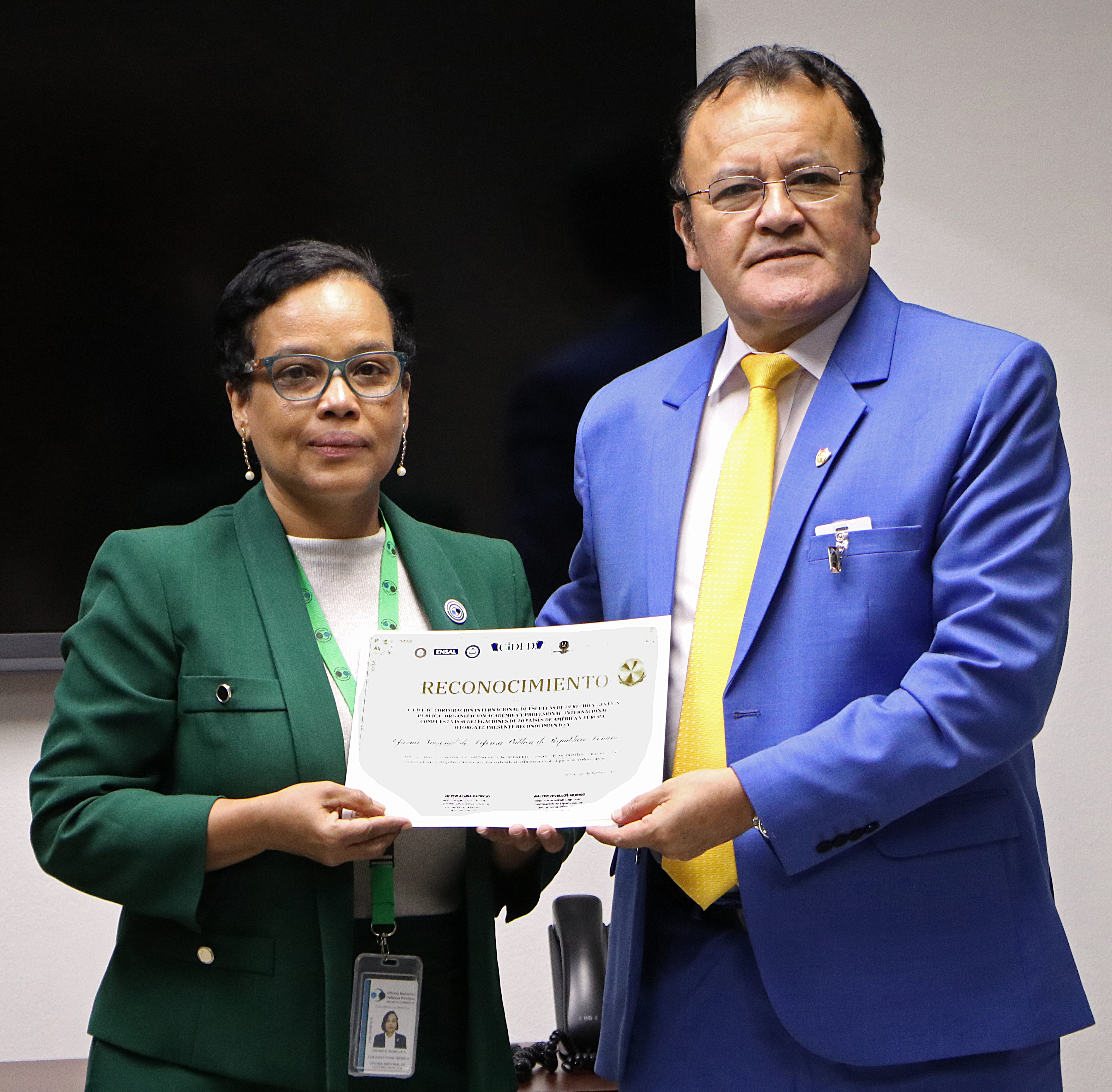 Entregado por la CIDED a la ONDP por su apertura al intercambio internacional, su modelo de fortalecimiento institucional y su rol en el desarrollo de espacios de cooperación jurídica y académica con países de la región.