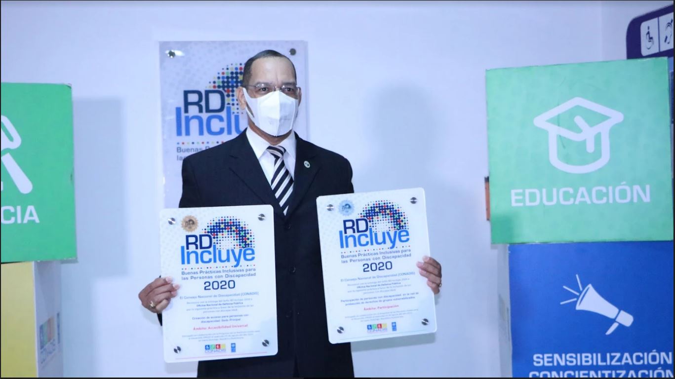 Los reconocimientos fueron entregados por Jonatán Javier representando al Consejo Nacional de Discapacidad (CONADIS) al Lic. Rodolfo Valentín Santos, director de la Oficina Nacional de la Defensa Pública (ONDP).