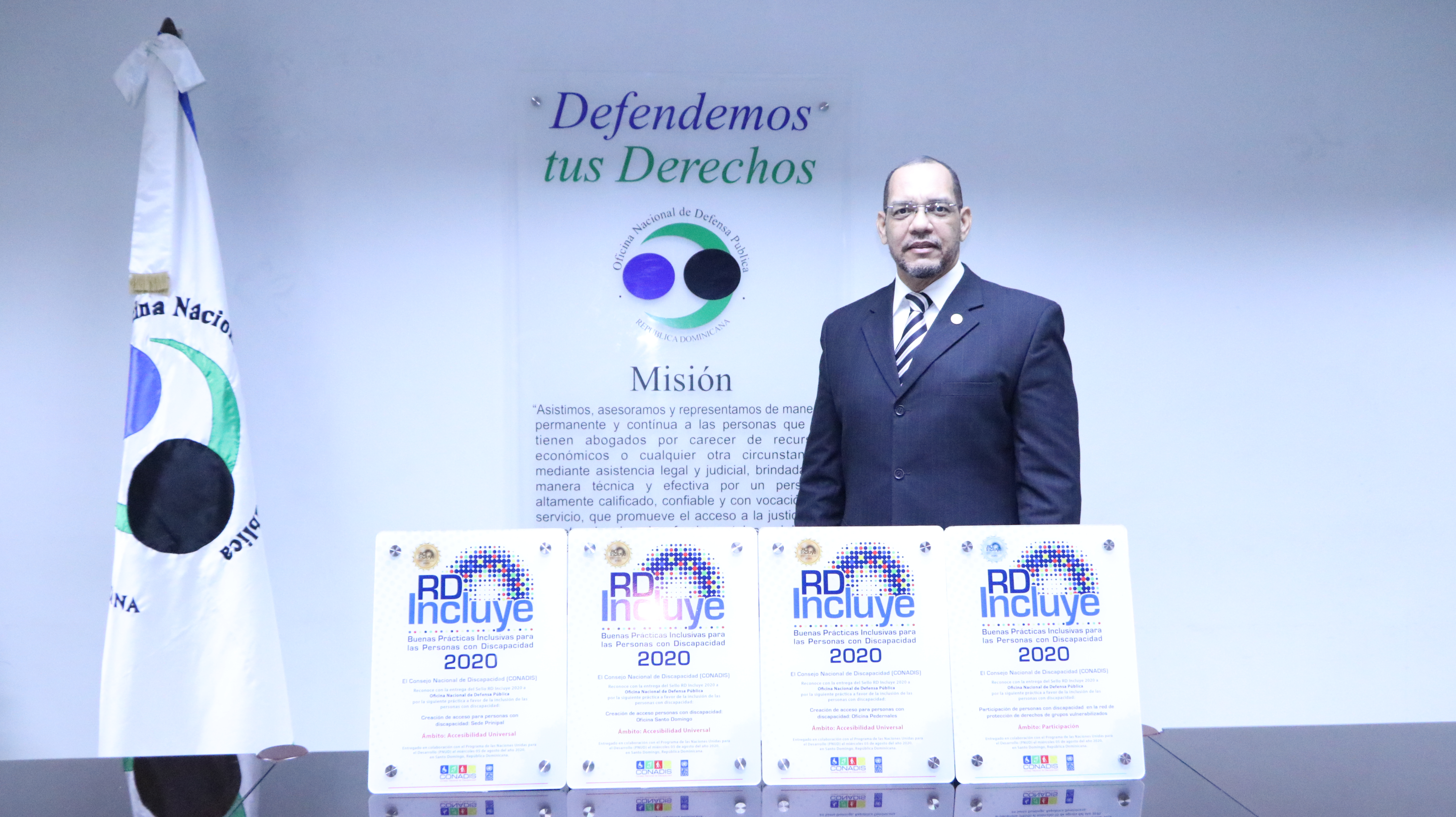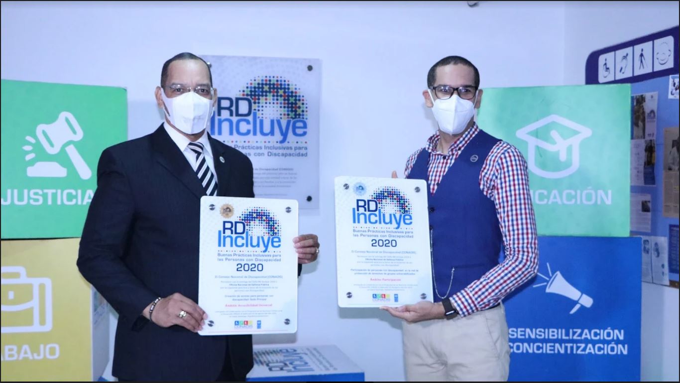 Santo Domingo. El Consejo Nacional de Discapacidad (CONADIS) y el Programa de las Naciones Unidas para el Desarrollo (PNUD), Entregaron 4 Sellos de Buenas Prácticas Inclusivas RD Incluye 2020 a la Oficina Nacional de la Defensa Pública , tres sellos de oro y uno de Plata.