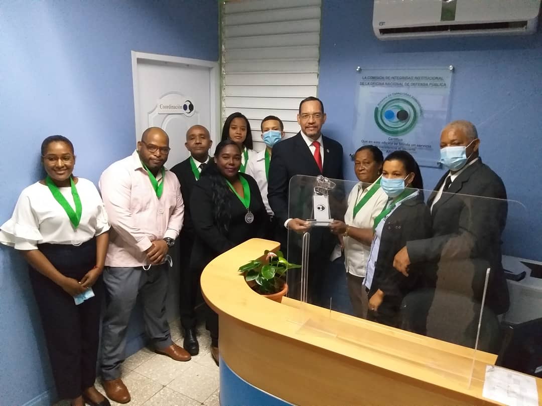 El equipo de Neyba, recibió su galardón y medallas por parte del Director Nacional y los representantes del Comité de Integridad de la Oficina Nacional de la. Defensa Publica, representados por la Lcda. Ramona Curiel, Directora técnica, Lcdo. Rafael Valdez, Director Financiero y la Lcda. Anny Hernández, Encargada del departamento de Protocolo.