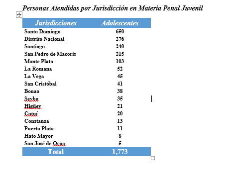 Santo Domingo.- Durante el segundo trimestre correspondiente Abril \ Junio 2021, La Oficina Nacional de la Defensa Pública ha asistido en Materia Juvenil de manera gratuita a 1,773 Adolescentes, de los cuales 19 son Adolescentes extranjeros de Nacionalidad Haitiana.