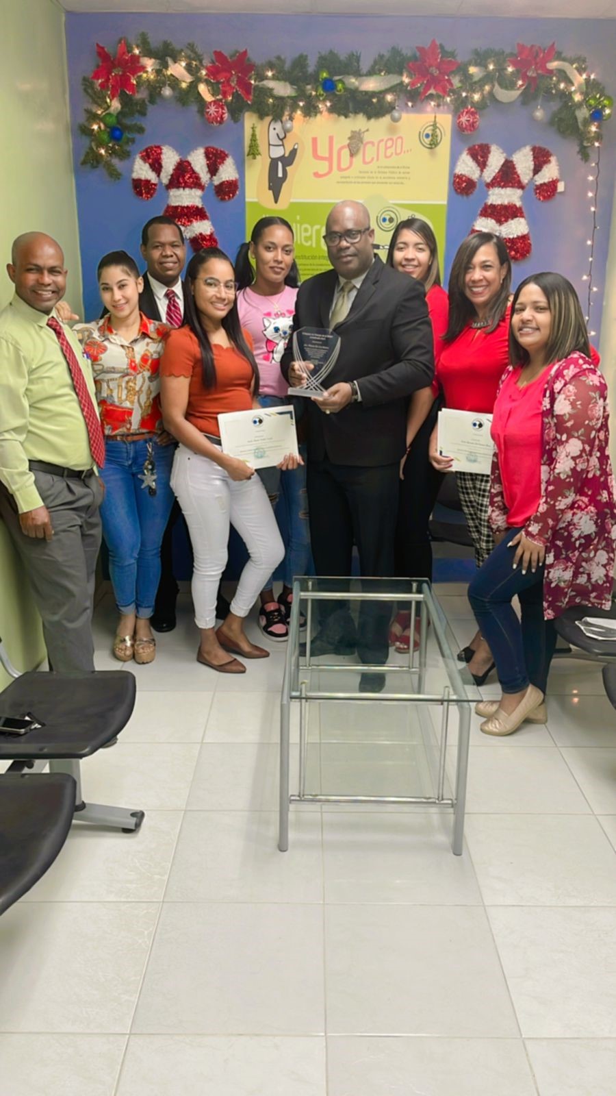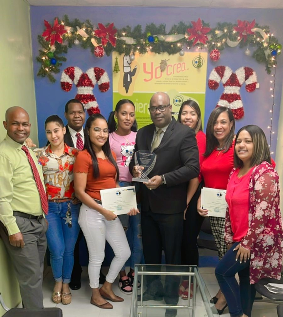 Colaboradoras y colaboradores de la Oficina de Defensa Pública de Peravia entregaron reconocimiento a su coordinador Wascar de los Santos.