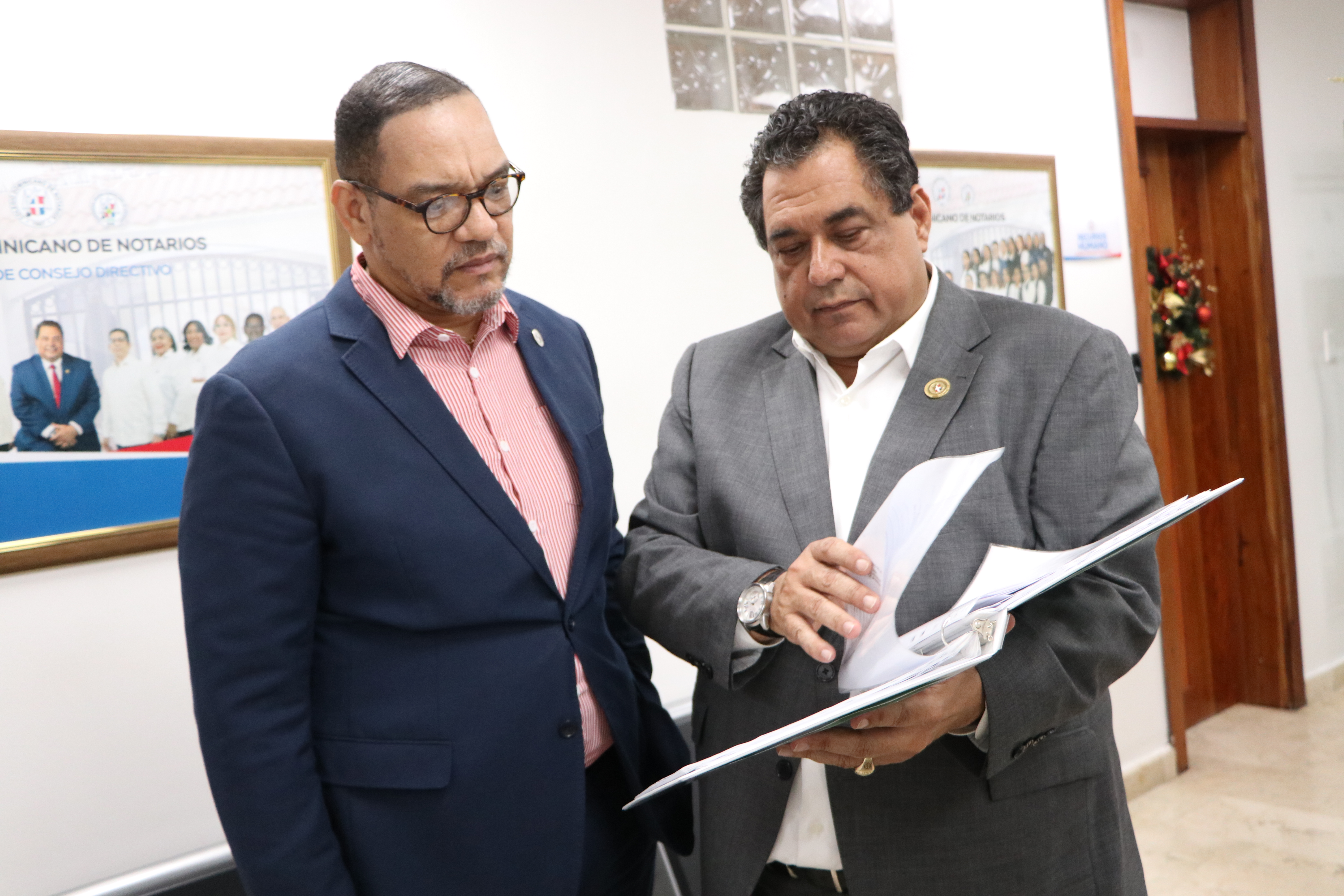 Santo Domingo.– El director de la Oficina Nacional de la Defensa Pública (ONDP), Rodolfo Valentín Santos, realizó una visita de cortesía al presidente del Colegio Dominicano de Notarios, Dr. Jhon Richard Paniagua, quien presentó al funcionario los avances tecnológicos, así como los trabajos de remozamiento y reconstrucción que está desarrollando el gremio para modernizar y fortalecer el servicio notarial en la República Dominicana.