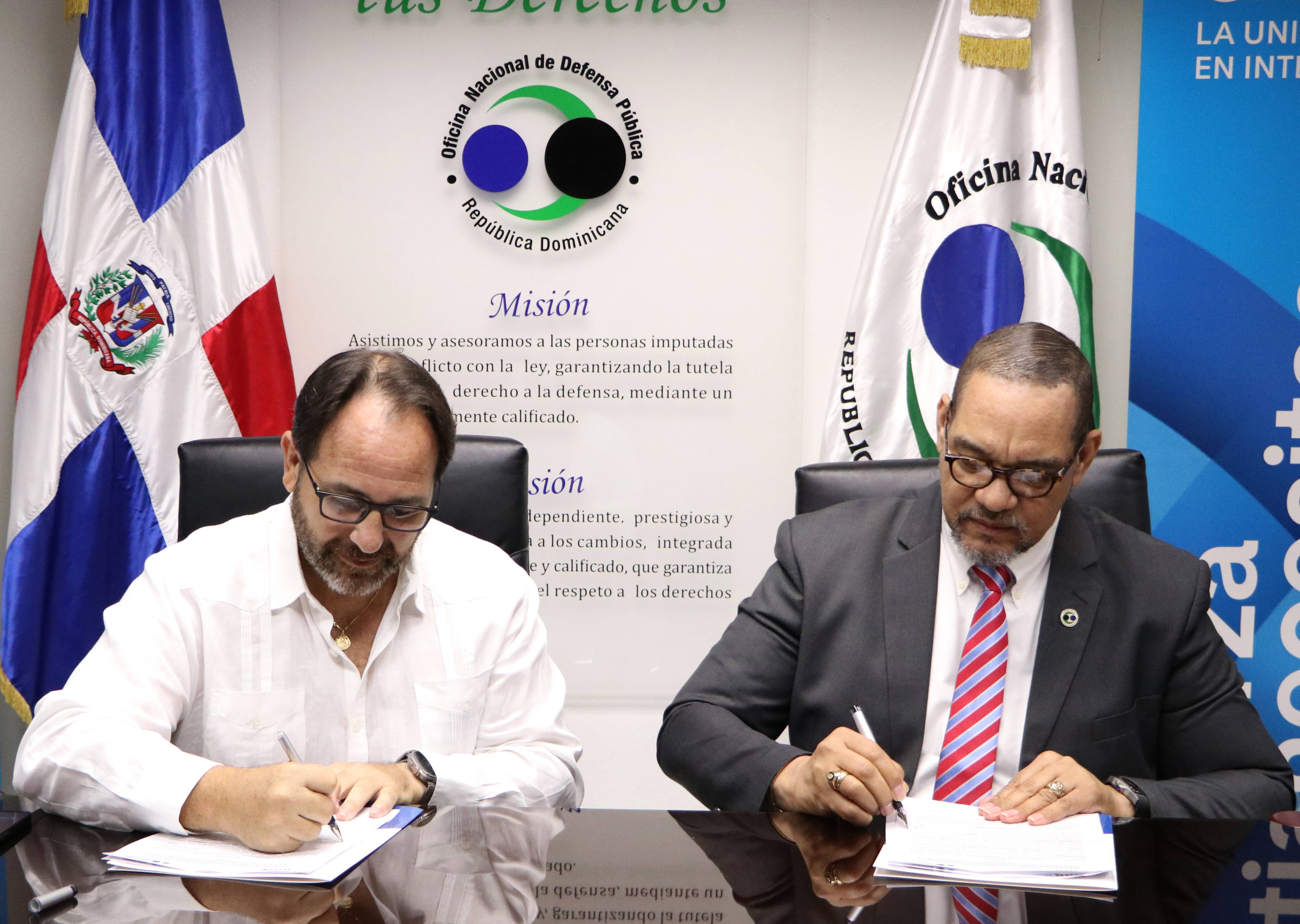 Santo Domingo, R.D.– La Oficina Nacional de Defensa Pública (ONDP) y la Universidad Internacional de La Rioja (UNIR) firmaron un acuerdo de cooperación académica en el marco del programa de becas y beneficios corporativos, con el objetivo de fortalecer la formación profesional y académica del personal de la Defensa Pública.