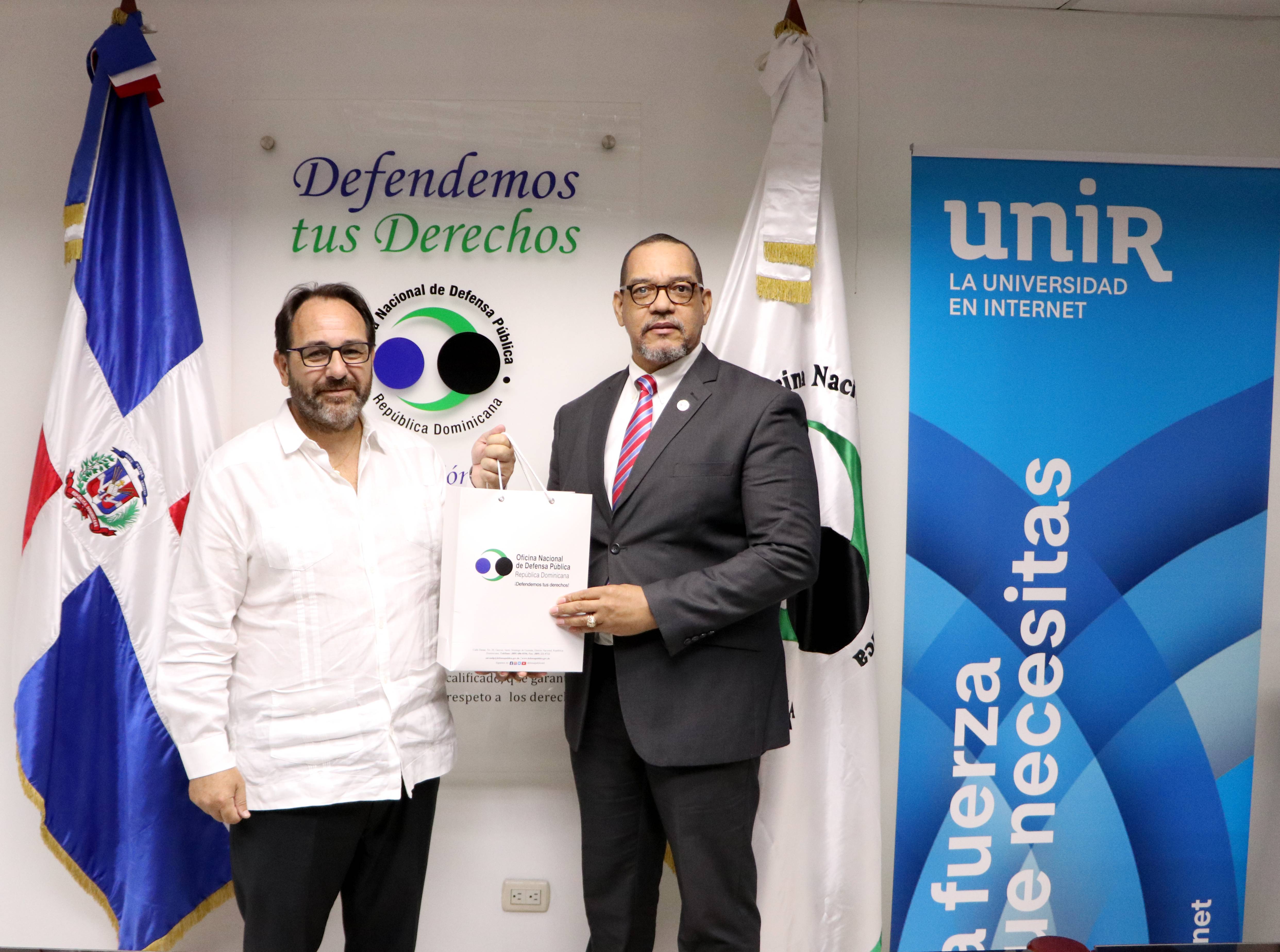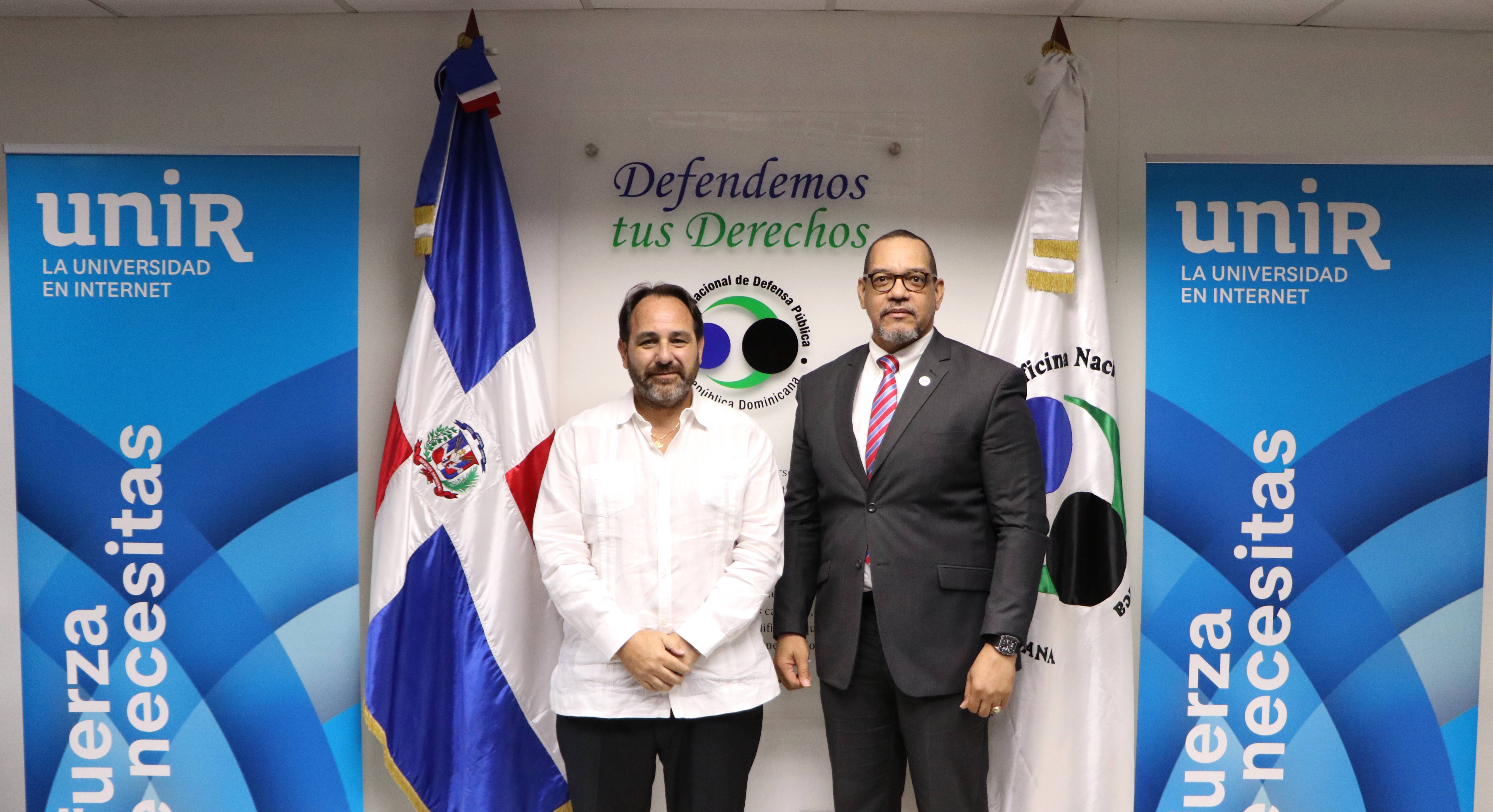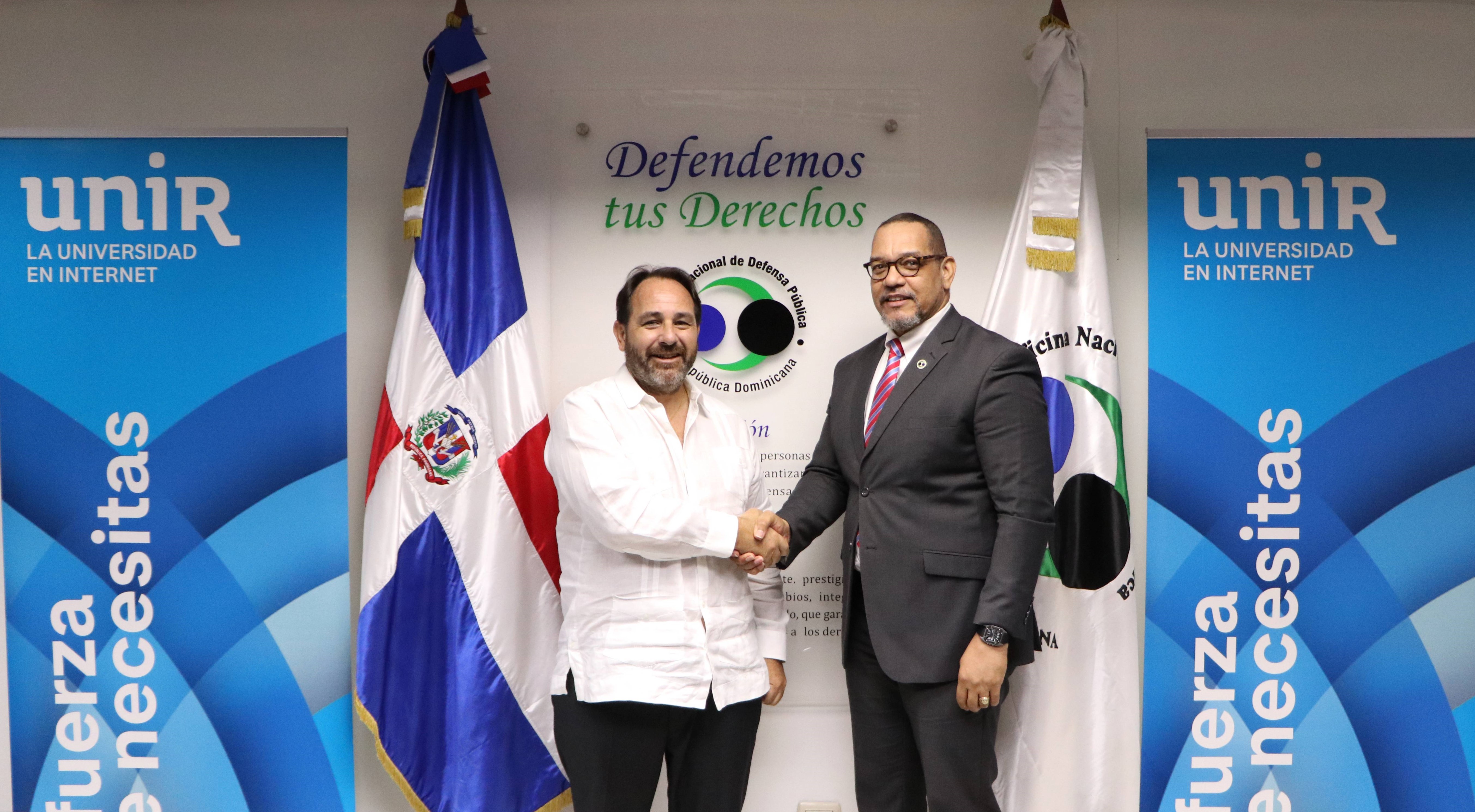 El convenio fue suscrito por Moisés Moya, director de Relaciones Institucionales de la Universidad Internacional de La Rioja (UNIR), y por el director nacional de la Oficina Nacional de Defensa Pública, licenciado Rodolfo Valentín Santos.